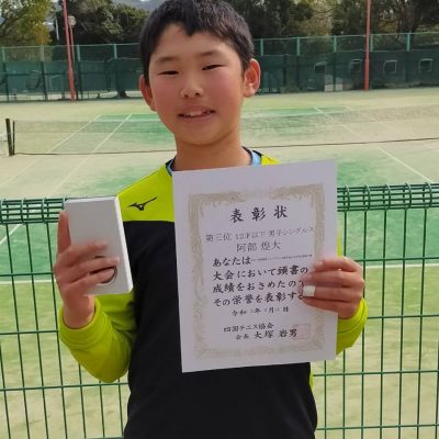 令和3年度四国小学生テニス選手権大会 男子シングルス 準優勝!! 阿部 煌大(小5) 丸亀テニスクラブ・ジュニア強化生 全国大会(8/18~21:東京)出場決定!! おめでとうございます!!