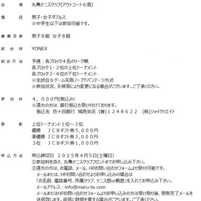 日頃から、丸亀テニスクラブをご利用頂き誠にありがとうございます。