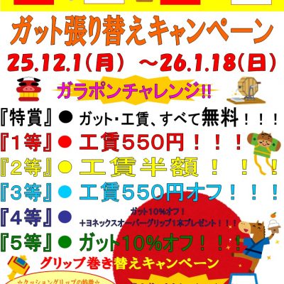 ガット代+工賃は同時開催中のガット張替キャンペーンにトライできます!