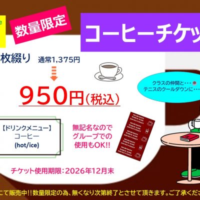 喫茶のコーヒーをお得に購入できる コーヒーチケットを数量限定で販売します!! 5枚綴り1,375円(コーヒー・イートインの場合)のところ 950円で販売!! ※チケット使用期限は2026年12月末まで 無記名なのでグループでの使用もOKです!  ...