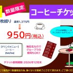 5枚綴り1,375円(コーヒー・イートインの場合)のところ